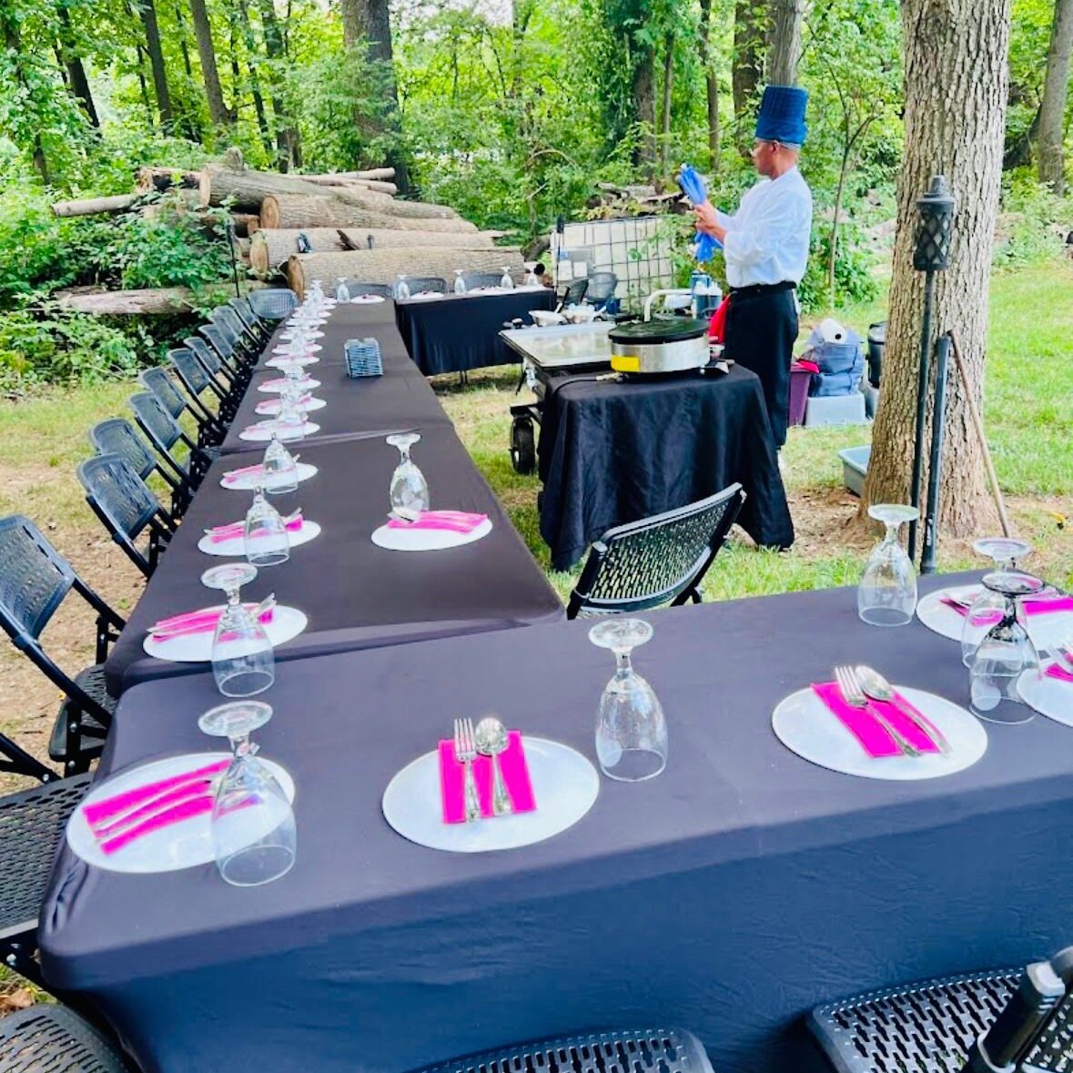 We provide everything you need — including tables, chairs, plates, utensils, cloth napkins, and more — so you can relax and enjoy the experience.